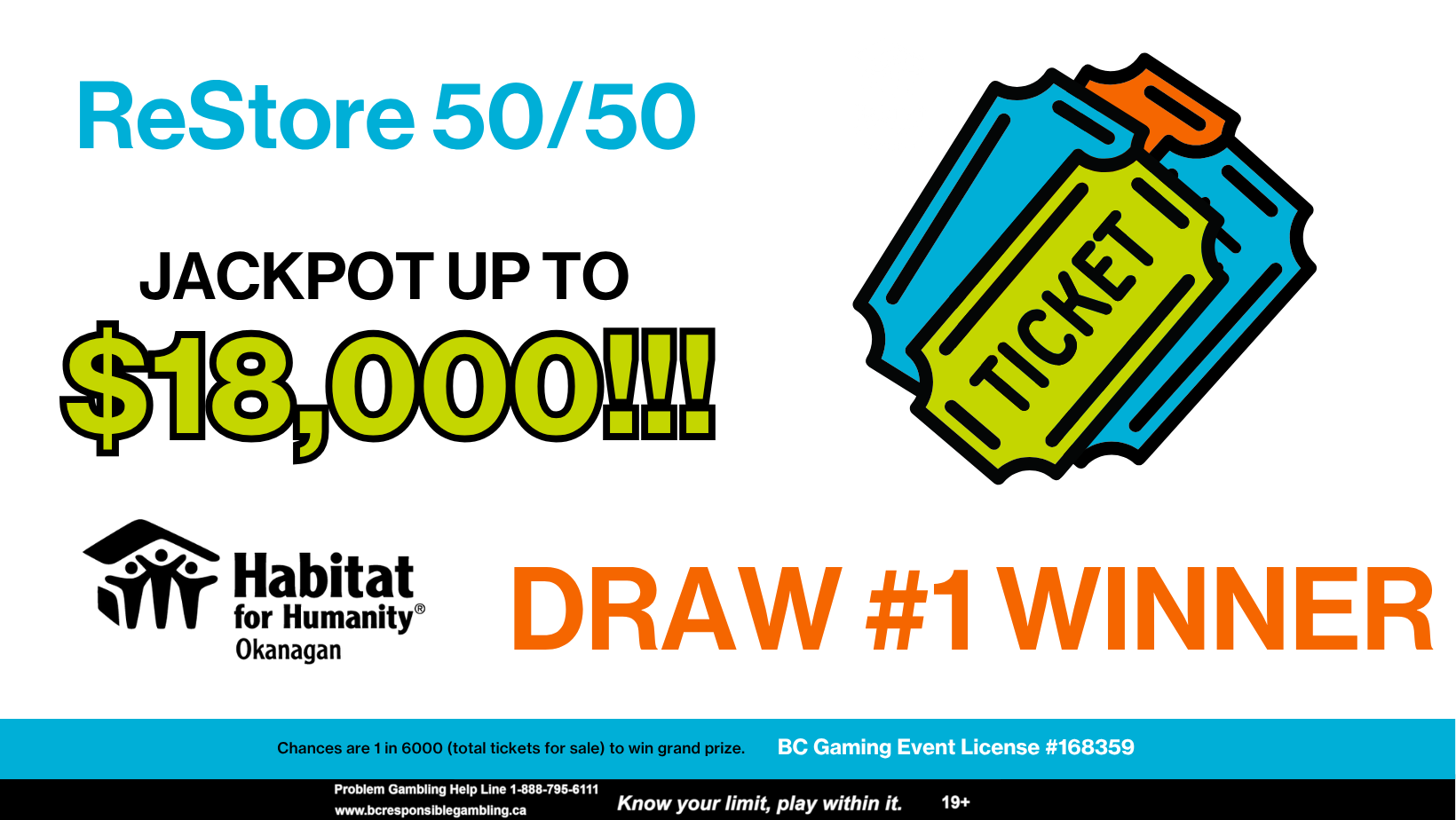On Tuesday, April 7th at 12pm, Draw #1 of our ReStore 50/50 raffle was drawn. The lucky winner was Amanda S. of Penticton with ticket #4280 who took home an incredible $9,000!
